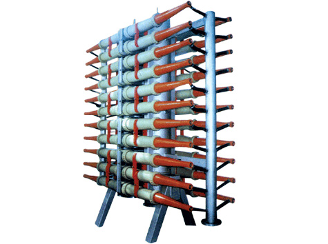 平列式雙向除渣器整體包括:進出漿總管、除渣器、排渣總管、支架、緊固器等部件。
